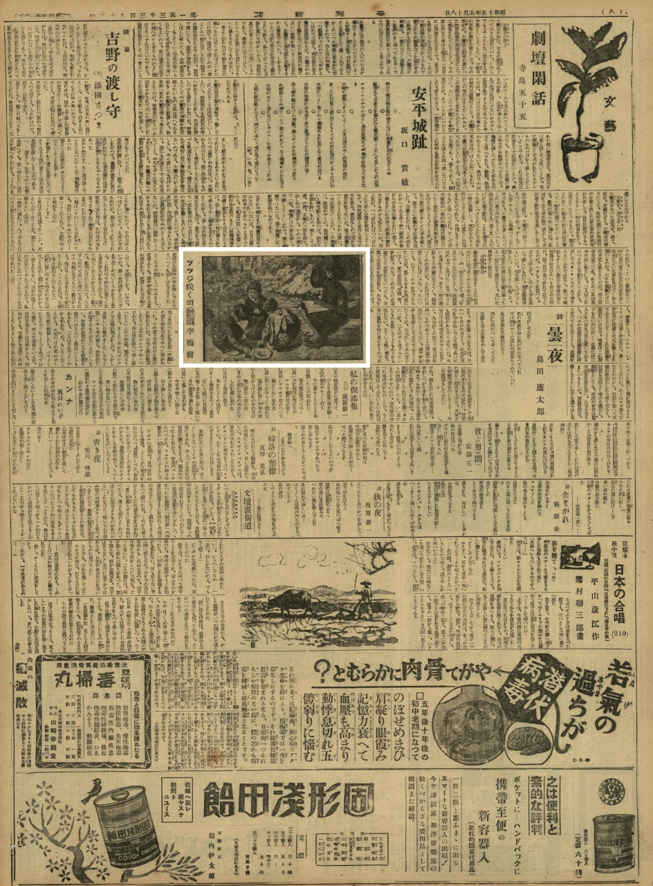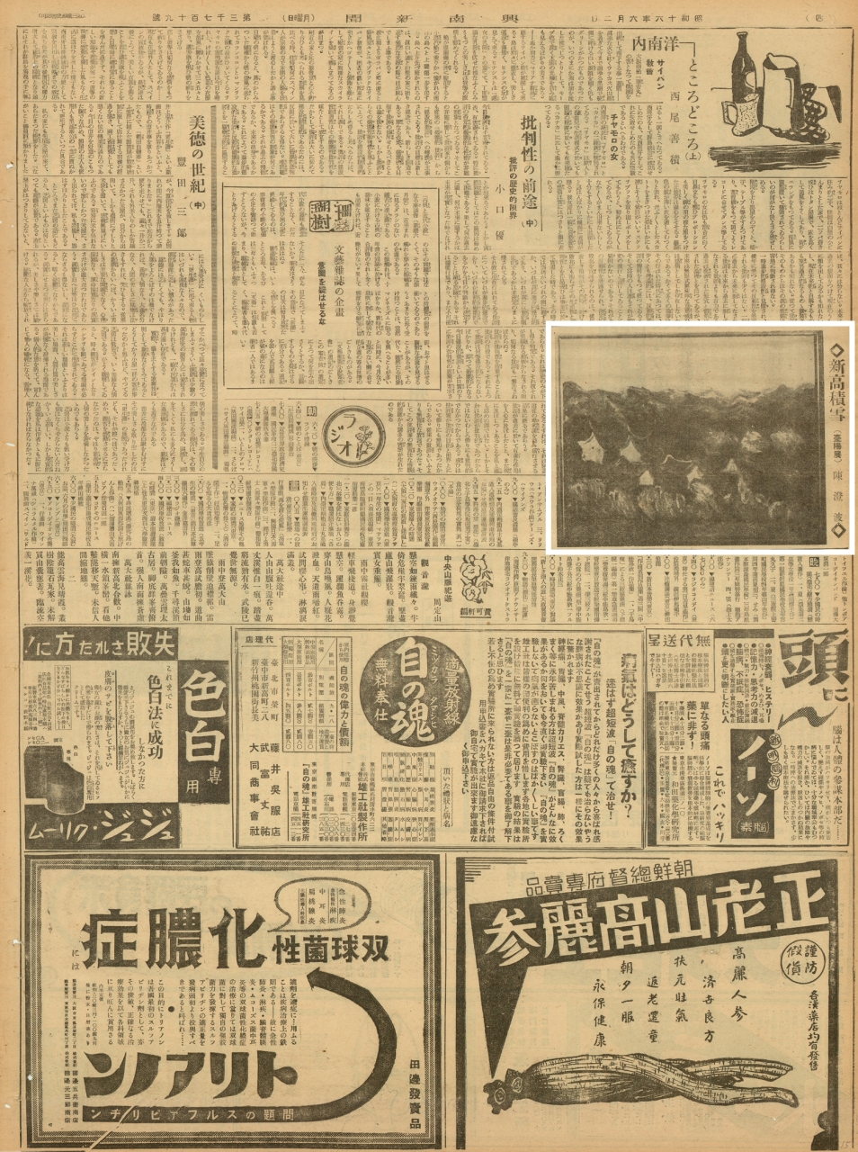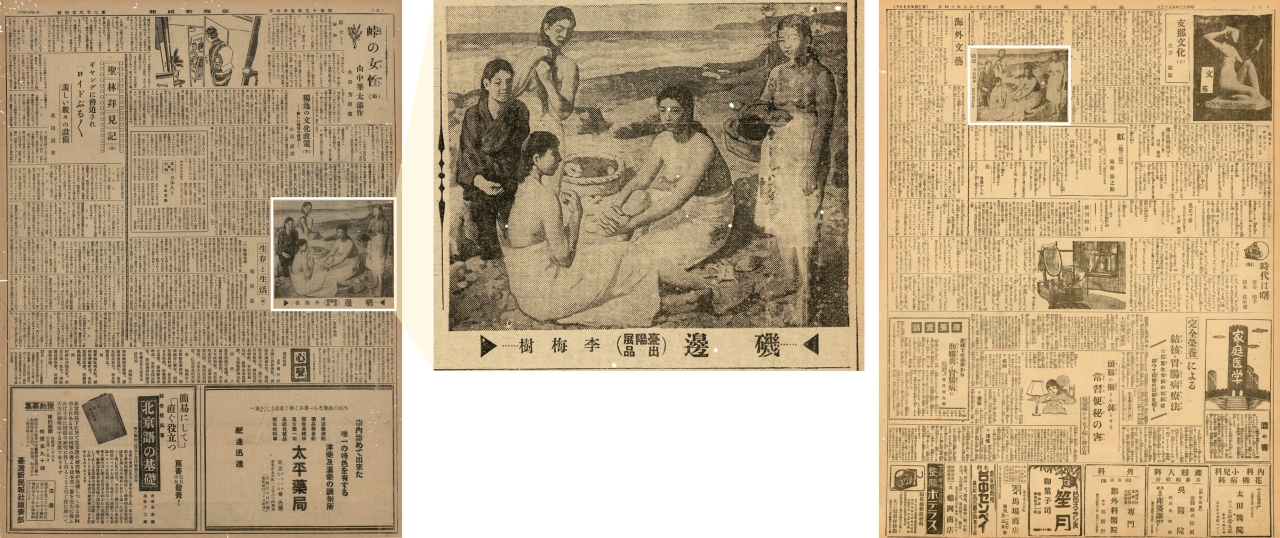 此作入選第5回臺陽展(1939年),《臺灣新民報》報導同頁包含藍蔭鼎的連載遊記與插畫。