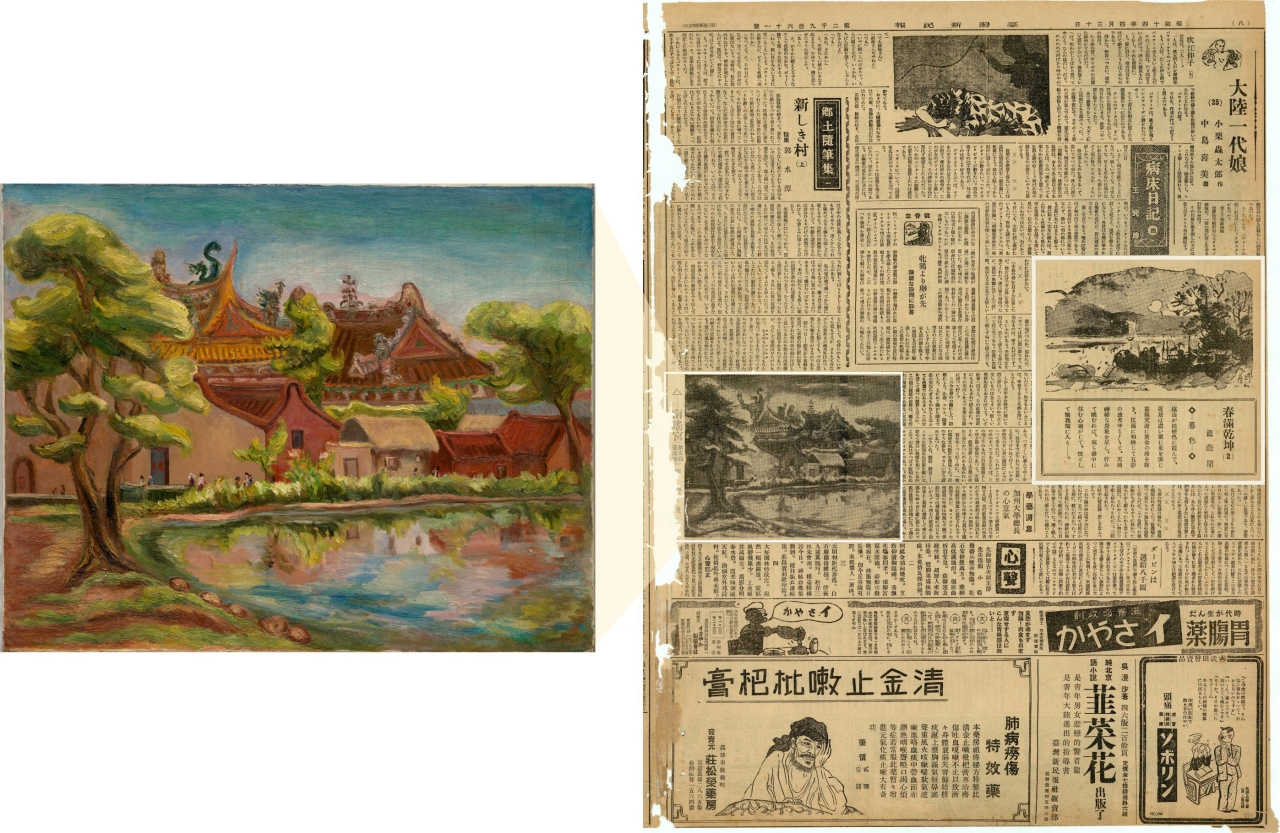 資料來源:〈水邊(南瑤宮)〉,《陳澄波畫作與文書》(CCP);〈臺灣新民報第2961號(1939-04-30)〉,《臺灣新民報社報刊史料》(T1119),中研院臺史所檔案館數位典藏。