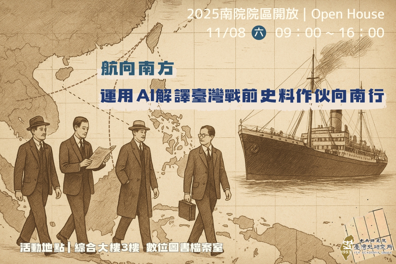 11/8南部院區開放─邀您一同航向南方,運用AI解譯臺灣戰前史料
