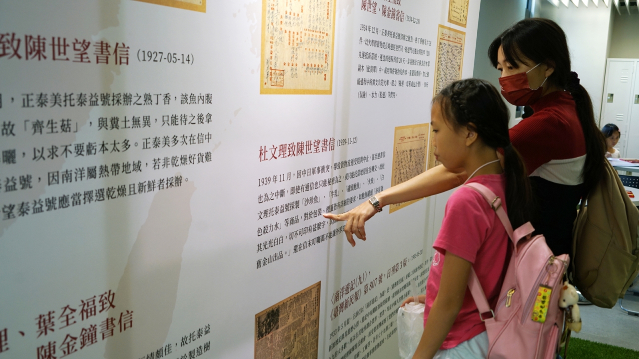 民眾參觀長崎泰益號東亞貿易網絡圖,以及臺南與南洋商業書信的情景。